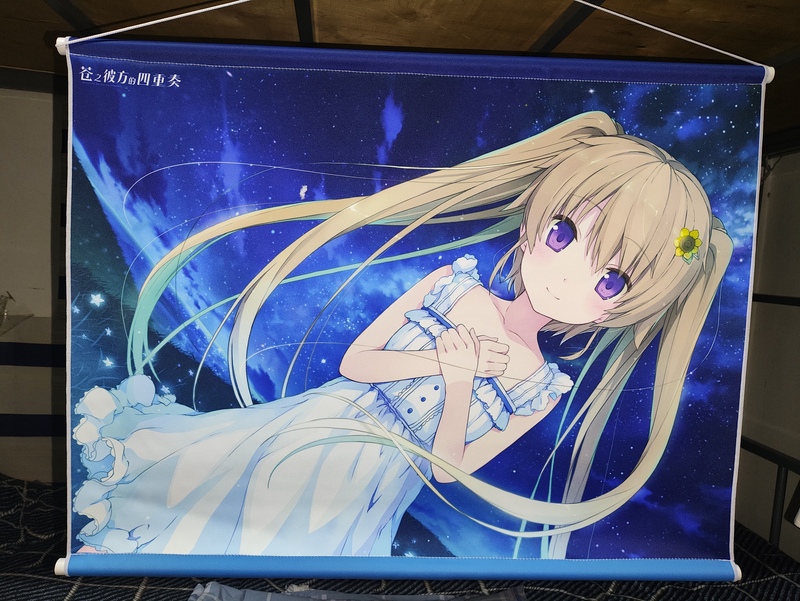 我买的挂画。之前不知道画上的是游戏里已有的CG,知道后感觉挺亏的,早知道买另一幅真白撑雨伞的挂画,是游戏里没有的场景